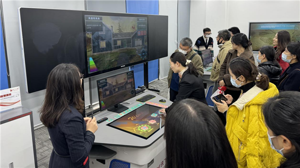 在体验过火箭结构、生物科普、化学实验、医学展示等虚拟实训课程资源后,教师们围绕资源应用场景、课程内容、产品特点、制作方式、研发周期、应用效果等方面与工作人员进行了交流。