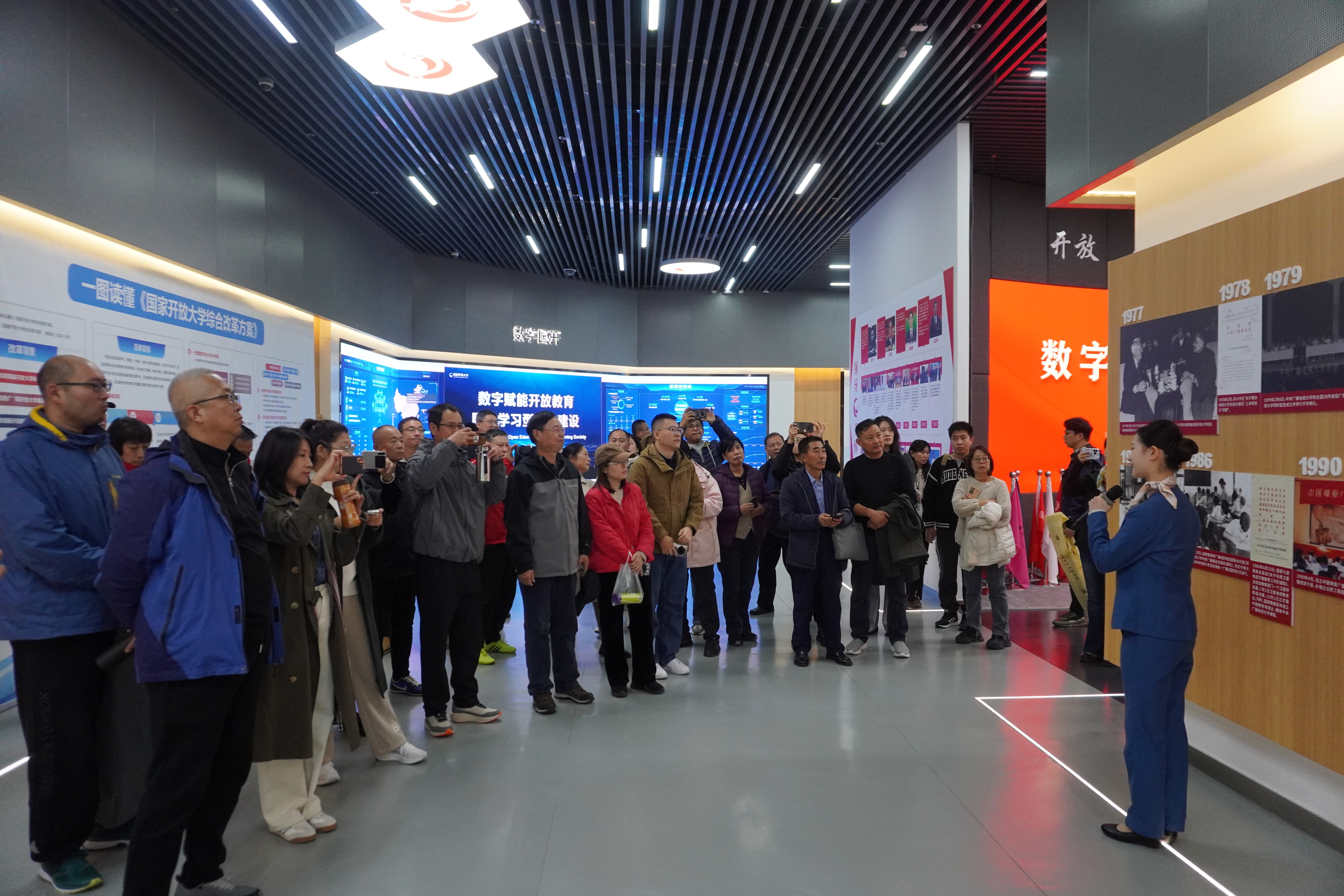 在总部工作人员的引导和讲解下,访学团师生参观了总部南大厅,深入了解国家开放大学自创办以来的光辉历程、办学理念、体系架构以及在人才培养、社会服务等方面取得的丰硕成果。参观过程中,双方围绕开放教育、学习支持、教师发展等问题进行深入交流。