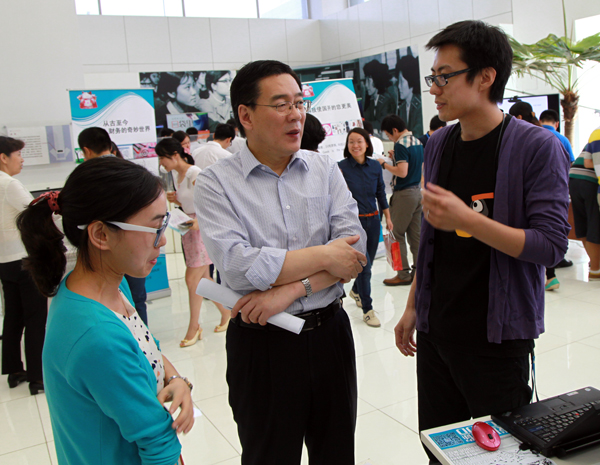 经济管理教学部的4位老师使用国家开放大学定制的移动学习终端,展示了“5分钟课程”、“测评训教学模式与网络课程实现”、“西方经济学移动学习全媒体数字教材”、“投资学网络核心课程”,展现了自主学习及碎片化学习的特点,让参观者体验到了微课程内容精致、终端载体多样化、应用方便灵活等优势。