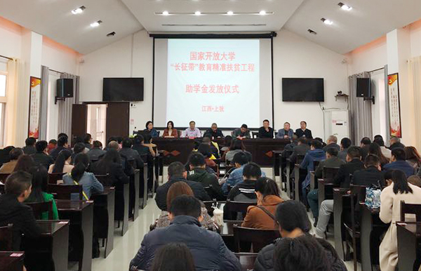 11月18日上午,国家开放大学上犹县委党校受援学习中心举行2017年度国家开放大学“长征带”教育精准扶贫工程助学金发放仪式,此次共有156名学员获得助学金。
