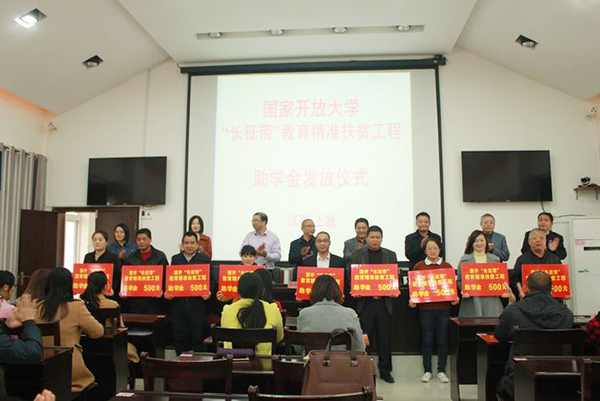 国家开放大学设立“长征带”教育精准扶贫工程助学金,对于激励“长征带”定点扶贫县(市)学生勤奋学习、努力进取,增强学生对学校的归属感,提升国家开放大学的社会影响力和进一步促进教育公平等方面,都有非常重要的意义。