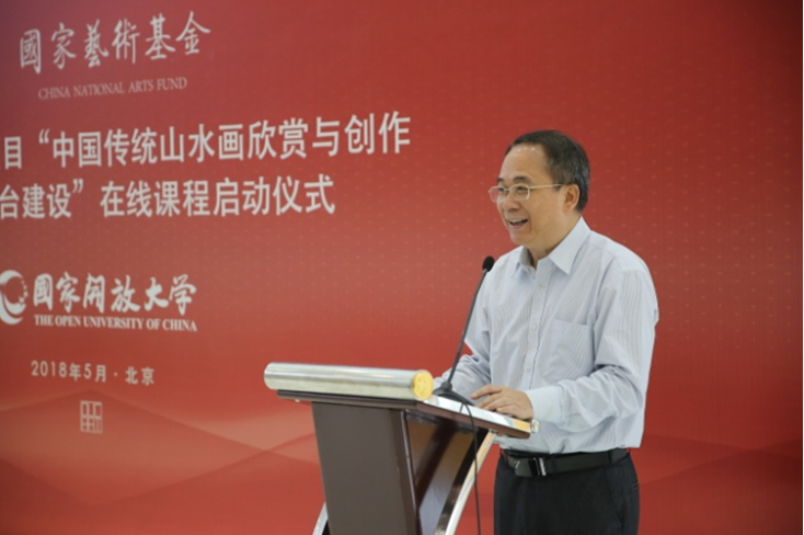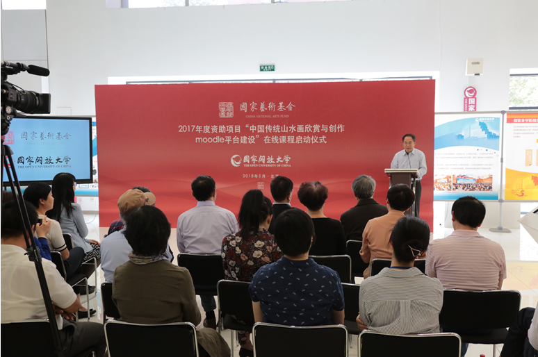 2018年5月8日,国家开放大学立项的首个国家艺术基金项目“中国传统山水画欣赏与创作Moodle平台建设”在线课程启动仪式在国家开放大学五棵松校区举行。国家开放大学校长杨志坚、副校长刘臣,国家开放大学哈尔滨分部校长黄岩、国家开放大学西安分部副校长赵丽玲,原中央芭蕾舞团党委书记庄正华、著名画家刘存惠出席会议。国家开放大学总部中层干部代表、出版集团相关人员、项目团队成员、部分教师代表及学员代表共50余人参加。