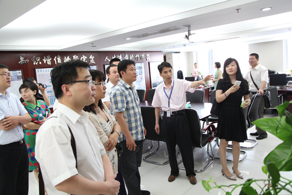 刘建同表示,职成司和国家开放大学在业务上联系很紧密,开放大学建设在推动开放教育的发展、支撑高等教育大众化以及深化教育综合改革上做出了贡献。职成司以党的群众路线教育实践活动为契机,适应新形势的变化,调整管理方式,鼓励支持青年干部深入基层了解学习并形成了基层定点联系的工作机制。通过参观调研,青年干部对远程教育有了新的认识和感悟,达到了“虚心学习、深入思考、总结升华”的目的。(摄影:郁章利 王硕)