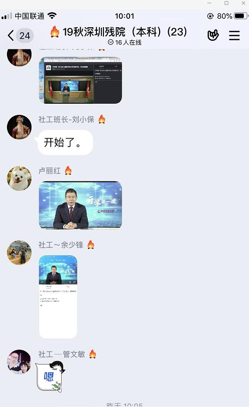 作为班长带领同学认真学习国家开放大学党委书记、校长荆德刚的“开学第一课”
