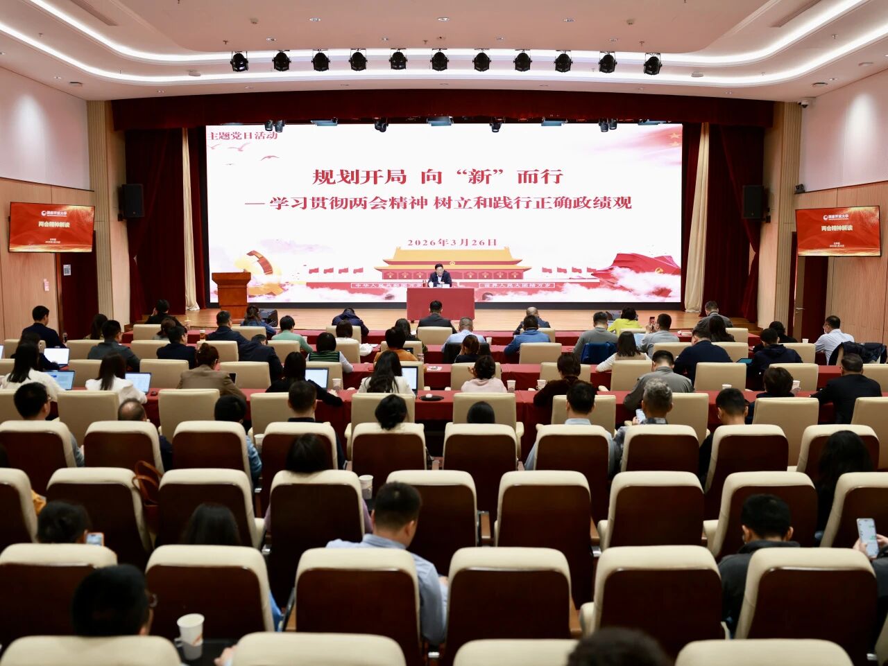 3月26日,国家开放大学马克思主义学院党支部联合校内24个党支部开展“规划开局,向‘新’而行——学习贯彻两会精神 树立和践行正确政绩观”联学联建主题党日活动,深入学习贯彻全国两会精神和《中华人民共和国国民经济和社会发展第十五个五年规划纲要》,认真落实《教育强国建设规划纲要(2024—2035年)》,深入学习贯彻习近平总书记关于教育的重要论述,牢固树立和自觉践行正确政绩观。