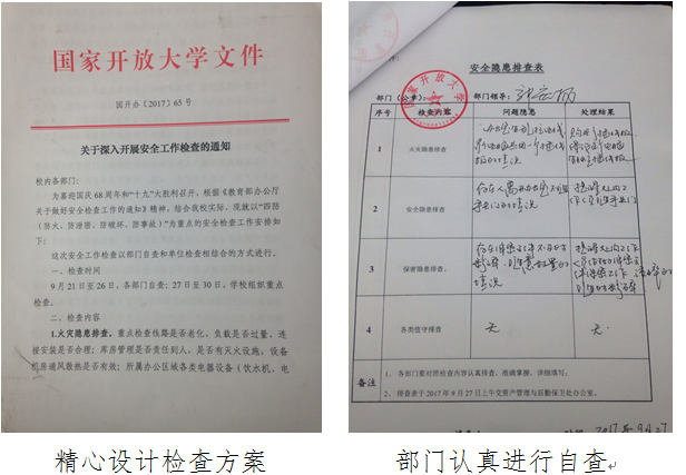 入秋以来,为确保国庆节和“十九大”期间安全,国家开放大学严格按照上级要求,紧密结合学校实际,扎实抓好各项安全工作落实。