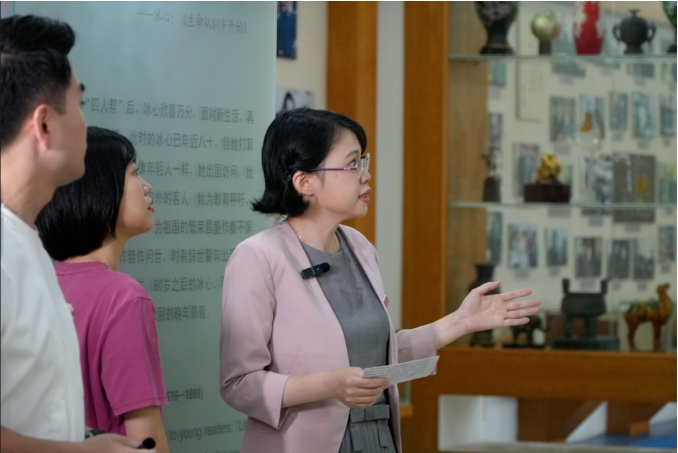 教学团队充分发掘长乐区冰心文学馆的馆藏特色和福州市冰心故居的历史文化,在前期调研中央民族大学校史馆基础上,发挥多层级、多学科的师资团队优势,首次尝试多场景连线,用一镜到底的沉浸式拍摄手法,既以文学文本细读为基础,又有社会历史文化的拓展与升华,体现出“中文+传媒”“人文+智能”的创新特色。