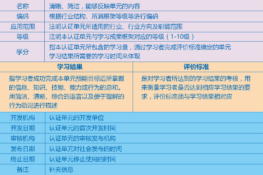 认证单元是认证标准(认证单元+转换规则)的核心内容,不同类型的学习成果依据认证单元,可以得出科学、合理、有效的对应关系,为不同类型的学习成果间相互转换提供参照和依据。各颁证机构依据对应关系签署学习成果转换协议,进而实现不同类型学习成果之间的转换。