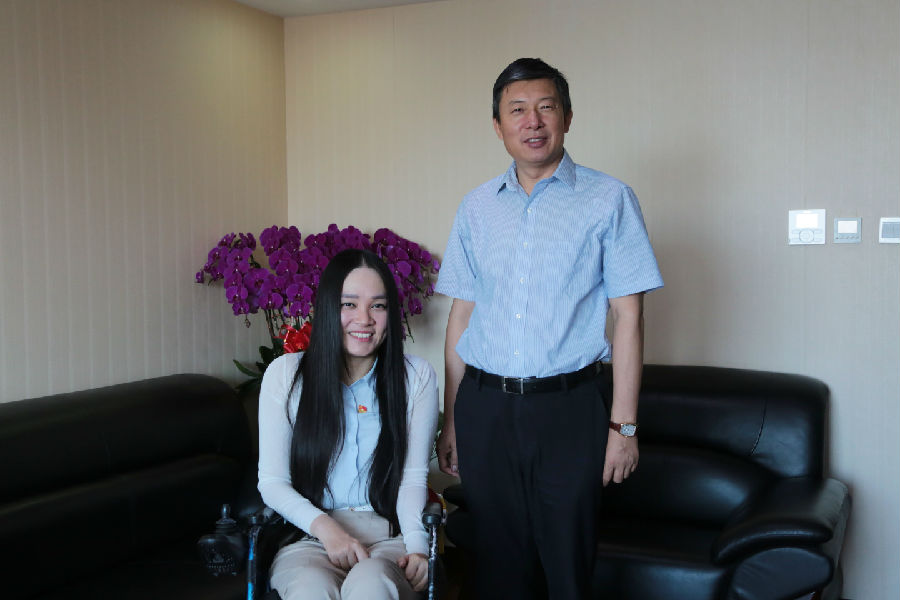 董明是国家开放大学(武汉)教师,全国道德模范、中国青年“五四”奖章获得者、全国百名优秀志愿者、北京奥运会残奥会先进个人。董明在国家开放大学(武汉)师生们的关心下,靠自学获得大学文凭和国家心理咨询师资格证书,并积极投身公益活动,发起成立“董明爱心志愿者团队”“董明爱心基金”。常年义务帮助他人的她被誉为“轮椅上的微笑天使”。6月21日上午,她也作为国家开放大学优秀校友,在国家开放大学办学40周年大会上发言,感恩母校给予她知识和力量,她将教书育人、立德树人、继续做好志愿服务,为社会做贡献。