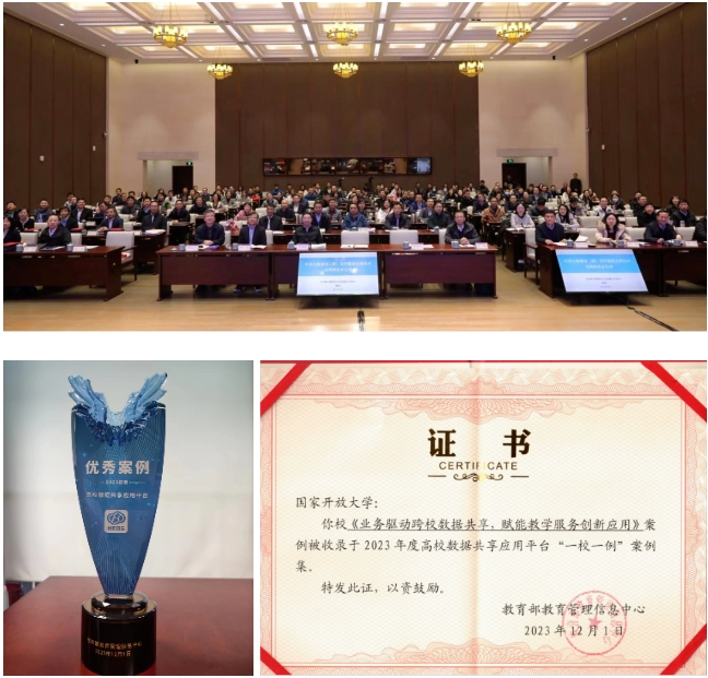 国家开放大学数据共享案例入选教育部2023年度高校数据共享应用平台优秀案例