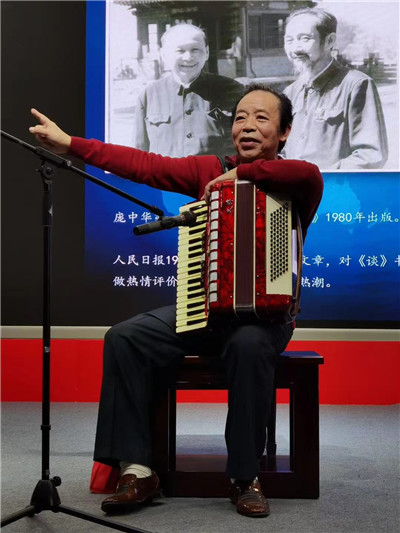 经过多年实践积累,在融合了教育心理学等内容的基础上,庞中华总结出了一套独特且实用的教学方法。在讲座现场,庞中华老师通过演奏手风琴,深入浅出地为大家讲解书法艺术与音乐韵律之间的关系,用通感的方法启发大家思考,生动形象,令人印象深刻。在互动环节,庞中华还亲自在黑板上板书示范,并且与现场听众进行了气氛融洽的交流。最后,庞中华勉励大家一定要做到不忘初心,学会“静下心来去做一件事”,不要做一个虚度年华、碌碌无为的人。 (摄影:牛涛)
