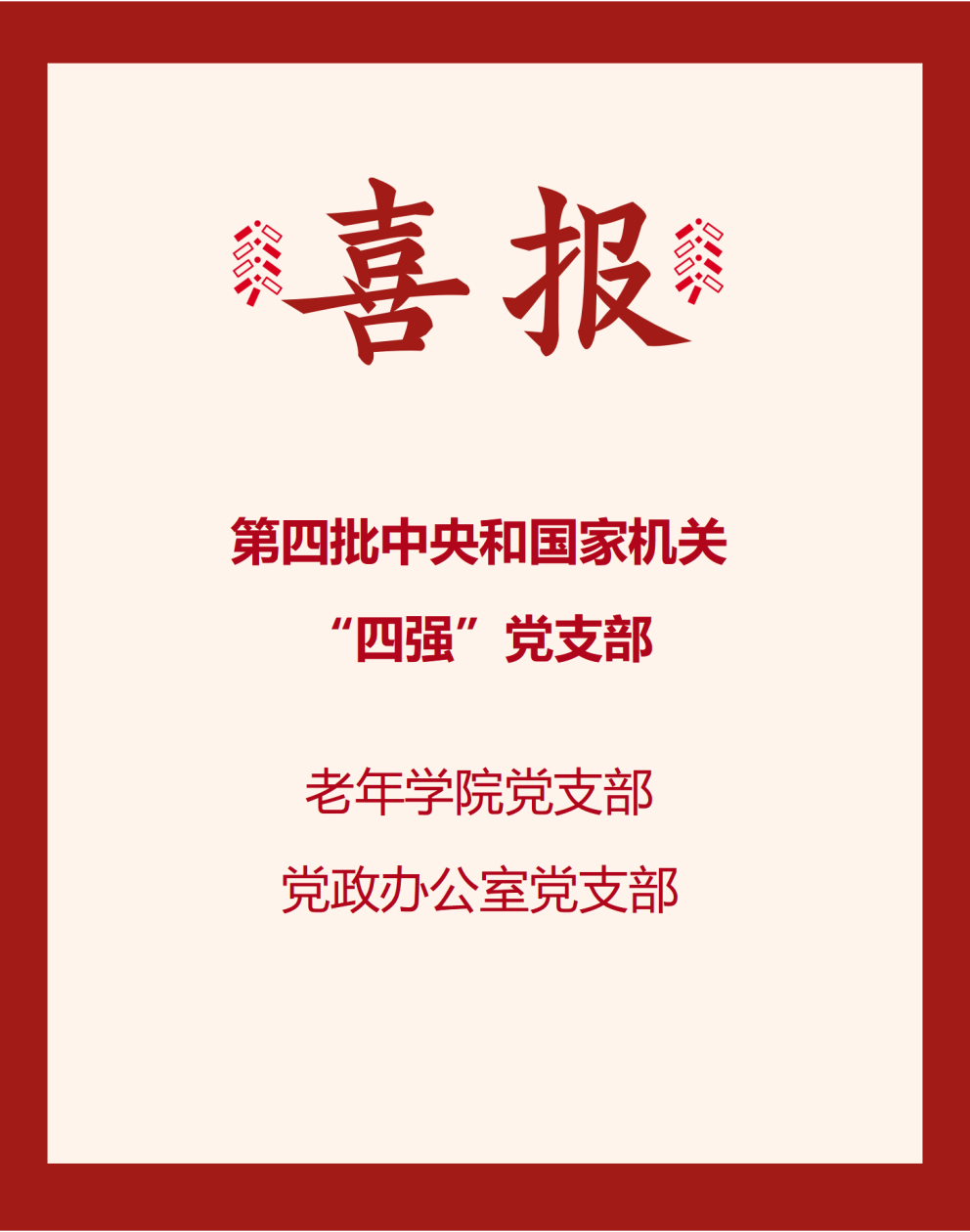 近日,中央和国家机关工委印发《中央和国家机关工委关于命名第四批中央和国家机关“四强”党支部的决定》,国家开放大学老年学院党支部、党政办公室党支部被命名为第四批中央和国家机关“四强”党支部。