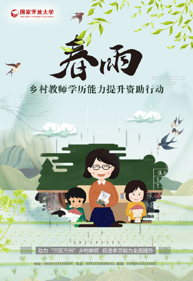 为促进“三区三州”贫困地区乡村教师学历能力全面提升,国家开放大学投入资金1400万元,启动实施“春雨乡村教师学历能力提升资助行动”(简称“春雨行动”)。该项目是贯彻落实党中央、国务院关于支持深度贫困地区脱贫攻坚的实施意见,全面执行教育部关于深度贫困地区教育脱贫攻坚工作的重要举措,体现了国家开放大学的责任与担当。