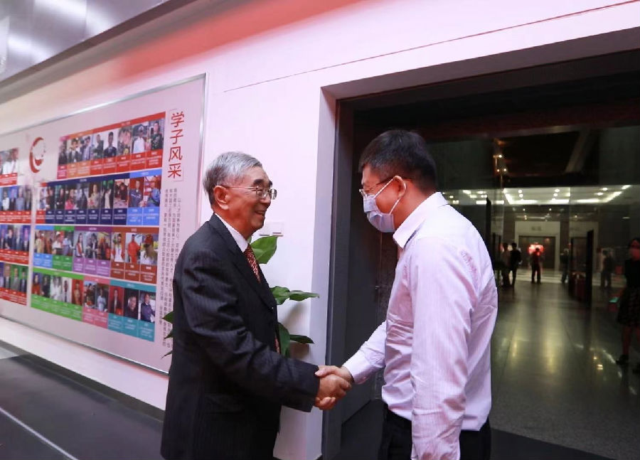国家开放大学党委书记、校长荆德刚在课程录制现场向朱高峰院士介绍了国家开放大学的发展现状。两人就教育改革与制造强国战略等话题开展了深入交流。