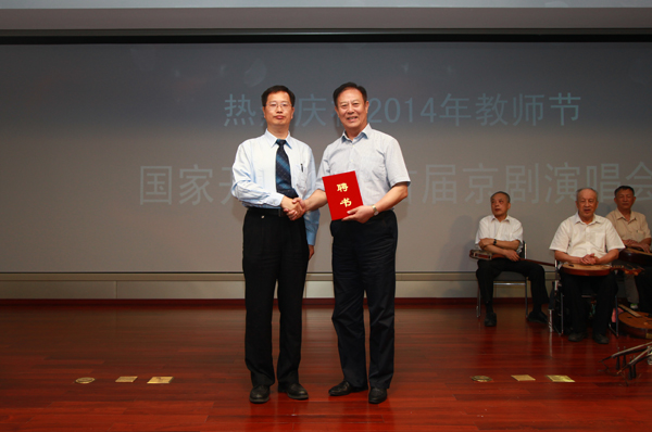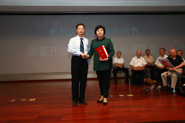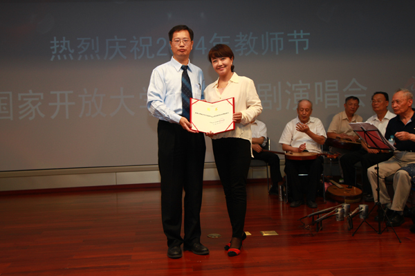 “海岛冰轮初转腾见玉兔玉兔又早东升那冰轮离海岛乾坤分外明……”在《贵妃醉酒》委婉优美的京剧唱腔和观众的声声喝彩中,9月9日,国家开放大学首届京剧演唱会拉开大幕。作为国家开放大学庆祝2014年教师节的重要文化活动之一,经过近2年的筹备,国家开放大学京剧研习会同时宣布正式成立,本场演出是国家开放大学京剧研习会的首秀。