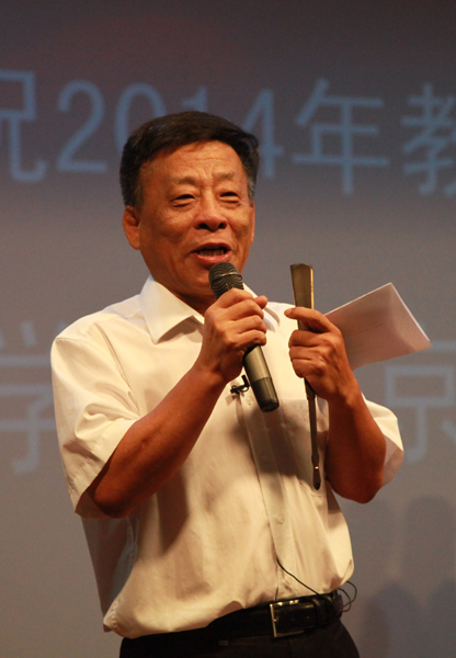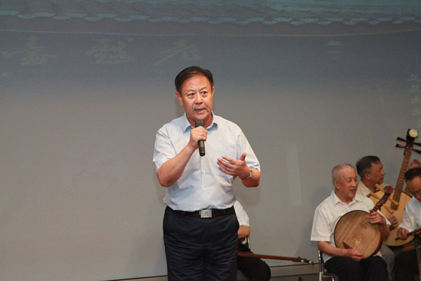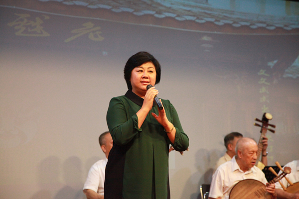 严冰主持本场京剧演唱会,为每一个经典曲目引经据典,讲述精彩唱段背后的故事,博得教职工的阵阵掌声。