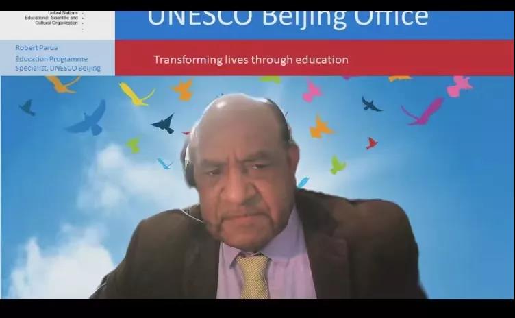 联合国教科文组织驻华代表处项目官员裴伯庸发表致辞。裴伯庸表示,感谢国家开放大学为本期培训成功举办做的精心准备和艰辛努力,并对联合国教科文组织与国家开放大学再度携手为蒙古国职业院校教师和技术人员提供在线教学技能培训感到欣慰。他指出,面对突如其来的严重疫情,任何一个国家都需要建立更加强大的教育系统,以帮助包括职业教育工作者在内的广泛人群应对危机。他希望,联合国教科文组织和国家开放大学2022年能够继续精诚协作,为蒙古国教师和技术人员的信息化教学能力建设提供精准培训和有力支持。