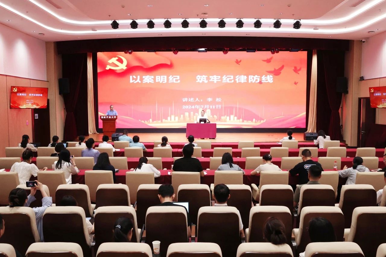 为扎实推进党纪学习教育,引导党员干部学纪、知纪、明纪、守纪,7月11日,国家开放大学党委委员、副校长李松以《以案明纪,筑牢纪律防线》为题,为人文学院党支部、艺术学院党支部、理工学院党支部、终身教育研究院党支部、教务部党支部、学习资源部党支部、质量监控部党支部、学分银行党支部等八支部全体党员、入党积极分子和青年理论学习小组成员讲专题党课。