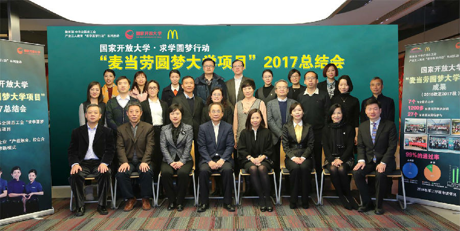 2018年1月29日,由国家开放大学和麦当劳(中国)联合主办的“求学圆梦行动——麦当劳圆梦大学项目”总结与研讨会在上海麦当劳(中国)总部举行。与会人员共同回顾总结“麦当劳圆梦大学”项目实施一年多来取得的成果与经验,围绕校企合作“双元制”联合培养人才展开研讨,为在新的起点下将“求学圆梦行动”以及“麦当劳圆梦大学”项目继续深入推进出谋划策。