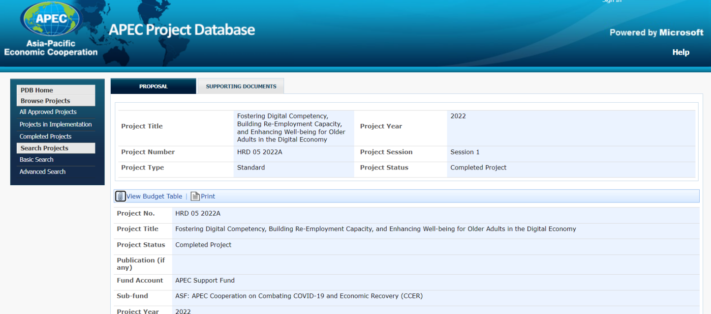 该项目于2022年10月立项,由范贤睿牵头组织申报。在项目周期内,项目团队联合国内一流高校开展科研工作,完成了《背景调研报告》和《数字时代的银龄行动——亚太地区老年人数字素养与技能现状调研》两份报告,同时开发设计了三门微证书课程,举行了“APEC低龄老年人数字能力研讨会”等活动,取得了丰富的实践成果,为学校申报和主持国际合作科研项目积累了宝贵经验。