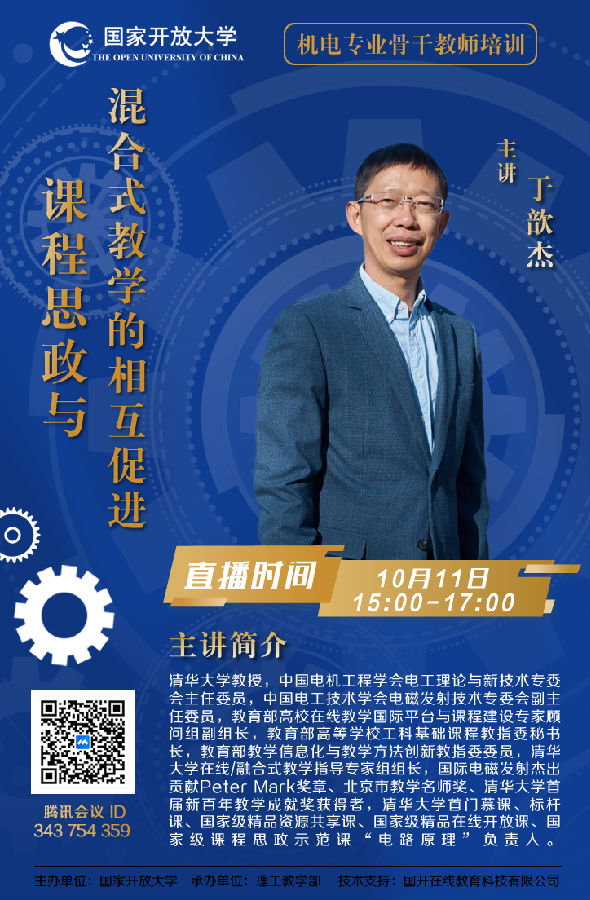 为进一步落实立德树人根本任务,全面加强国家开放大学办学组织体系机电类教师队伍建设,提升教师思想政治素质和育德育人能力,提高教师在线教育理论素养和专业教学能力,国家开放大学日前举办机电类专业骨干教师研修班。根据疫情防控要求,此次研修班采取线上直播和平台学习相结合的培训方式,通过国家开放大学新平台(lms.ouchn.cn)进行,来自总部和分部共计116名教师参加了本次研修班。