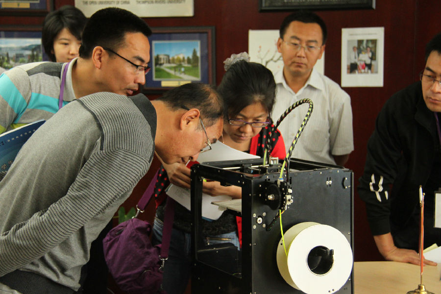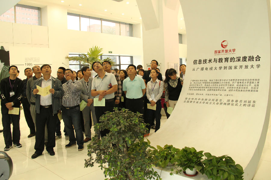 学员们还参观了国家开放大学信息化基本架构,“信息技术与教育的深度融合——从广播电视大学到国家开放大学”主题校史展,体验了老专家讲课三维呈现、多人远程协同实验等时空交互体验系统;体验了云教室多终端应用,并现场与国家开放大学南海实验学院进行了教学互动;观摩了5分钟学习网和微课程制作;参观了网上答疑室、在线研讨室,现场观摩了将老师讲课内容自动转化为课件的录课系统;体验了数字图书馆、电子书和电子期刊,并通过手机终端访问了国开移动图书馆“开卷”;体验了3D油画、3D打印和3D远程教学,观摩了西藏中小学教师远程3D打印培训案例。