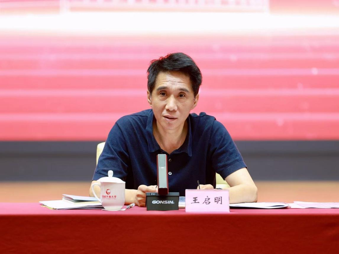 王启明对各学院院长的发言给予充分肯定,全面分析了学校当前面临的时代之问、发展之问和未来之问,深刻阐释了三个根本性转变:从成人在线教育到终身教育的转变、从学历导向到能力提升的转变、从规模化到个性化的转变,明确指出学校在综合改革、发展定位、办学类型、专业优化、人才培养、教师队伍建设、教学科研、评价激励八个方面的发展要求和目标。他强调,要建立健全学校领导班子与各学院院长之间的常态化交流机制,广泛听取一线教师的意见建议,把广大教师的智慧和力量有效凝聚到学校总体发展目标上来,形成推动国家开放大学事业发展的强大合力。