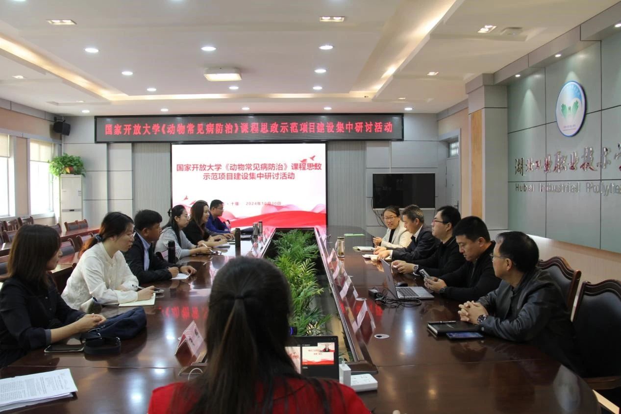 为贯彻落实党的二十届三中全会精神和全国教育大会精神,进一步做好课程思政示范项目建设工作,持续提升团队教师课程思政建设能力和教学水平,坚决落实立德树人根本任务,近日,国家开放大学“动物常见病防治”课程思政示范项目建设集中研讨活动在湖北省十堰市举办。湖北工业职业技术学院党委委员、组织部(统战部)部长李辉出席活动,国家开放大学乡村振兴学院副院长李瑞富、“动物常见病防治”课程教学团队核心团队成员、相关分部教师代表共20余人参加活动。活动由项目负责人、国家开放大学农林医药学院(乡村振兴学院)赵燕飞主持。