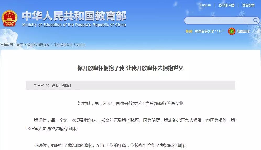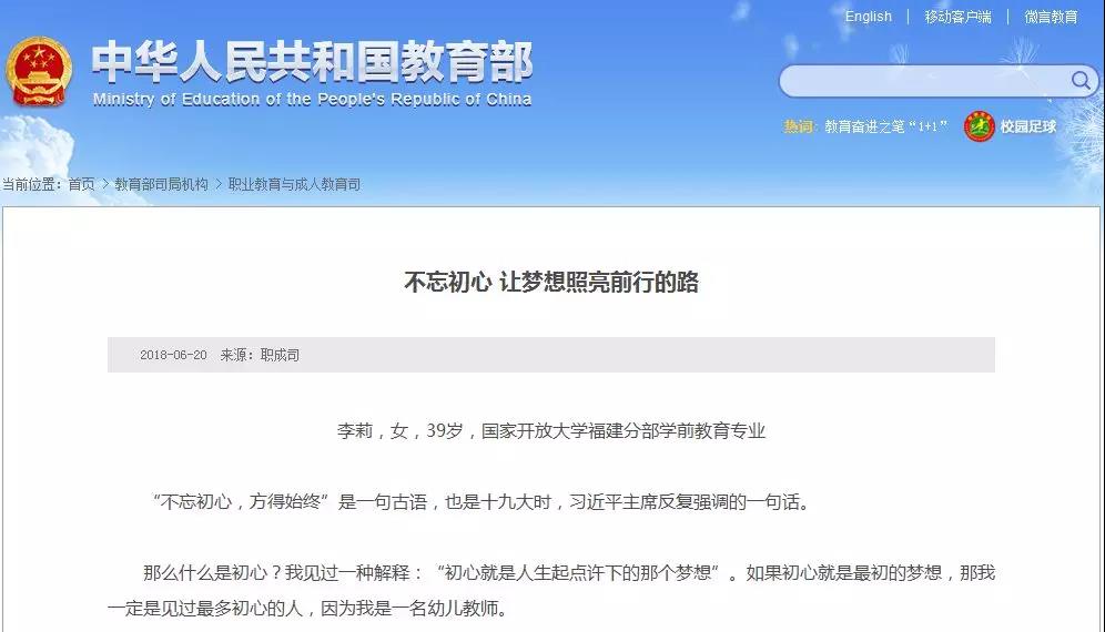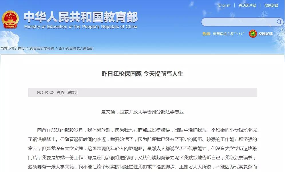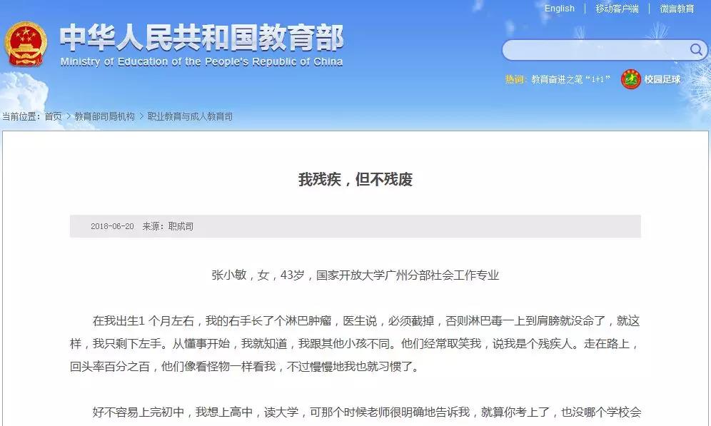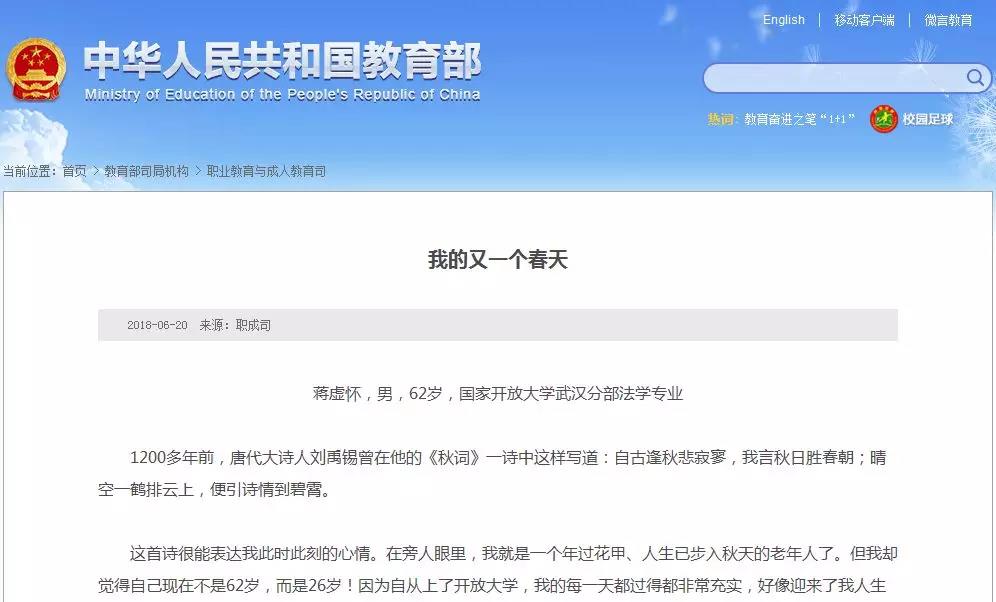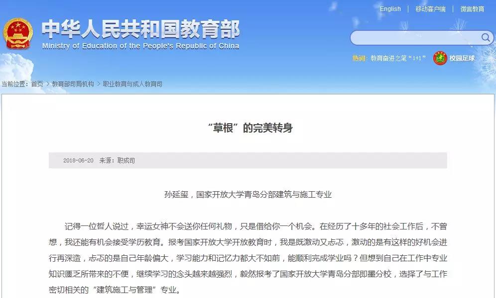 教育部官网系列报道国家开放大学学子“学习故事”
