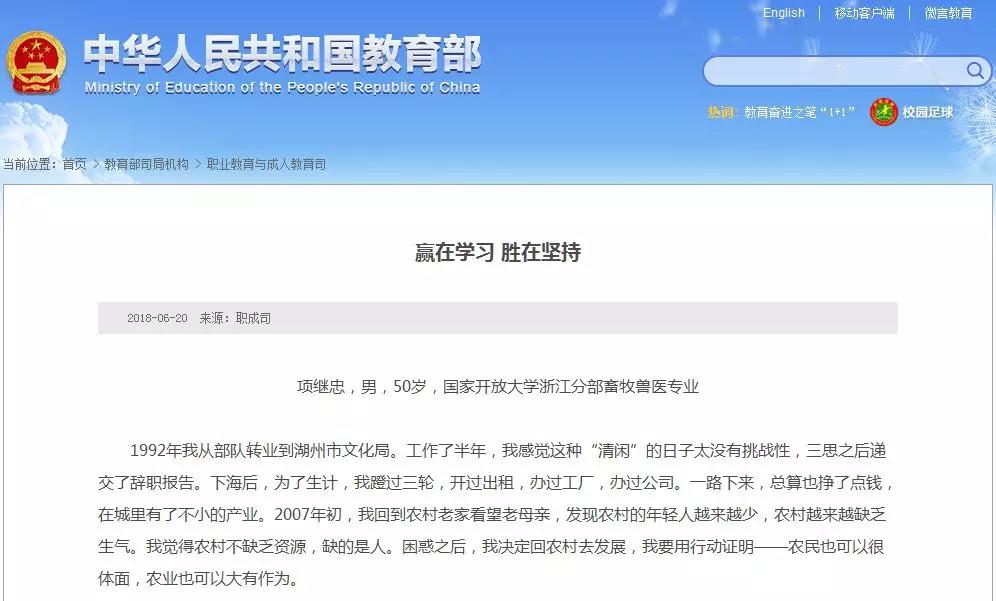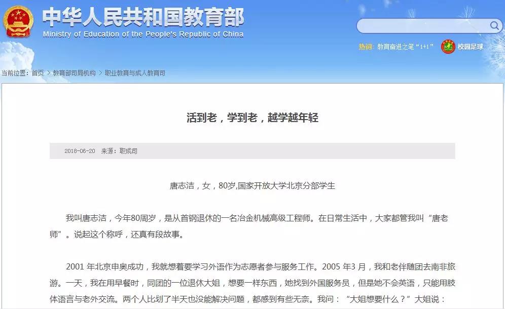 近日,教育部官网报道了国家开放大学学子系列“学习故事”,这对营造全民学习氛围,在全社会树立终身学习先进典型,推动我国学习型社会建设起到重要作用。