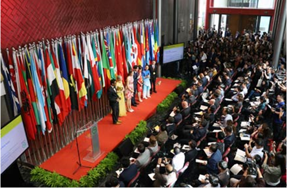 目前,全世界已有149个国家(地区)建立了530所孔子学院和1113个中小学孔子课堂,现有中外专兼职教师4.62万人,累计培养各类学员900多万人,举办各类文化活动受众上亿人次。