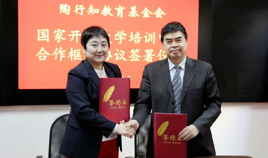 2019年12月6日,陶行知教育基金会和国家开放大学培训中心签署“幼儿园教师保育教育实践能力培训项目”合作框架协议和第一阶段项目实施合作协议。陶行知教育基金会理事长苏新颖、党组织书记崔祖瑛、办公室主任李思瑩,国家开放大学培训学院院长、培训中心主任汪启富,陶行知教育基金会职业教育发展专项基金执行主任王敦春,以及“幼儿园教师保育教育实践能力培训项目”负责人等参加签约仪式。