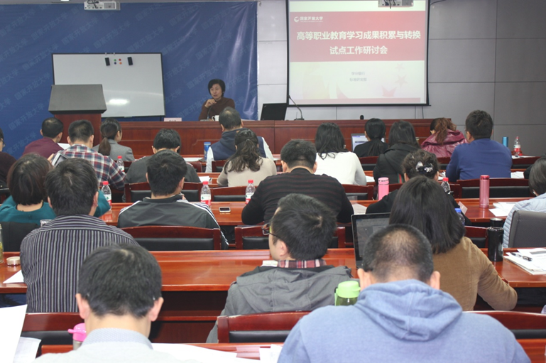 国家开放大学日前在北京召开“高等职业教育学习成果积累与转换试点工作研讨会”。会议旨在深入贯彻《中共中央国务院关于加快现代职业教育的决定》、教育部《高等职业教育创新发展行动计划(2015-2018)》的要求,进一步推进高职教育学分银行建设,搭建高职教育“立交桥”。