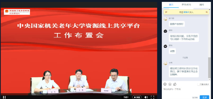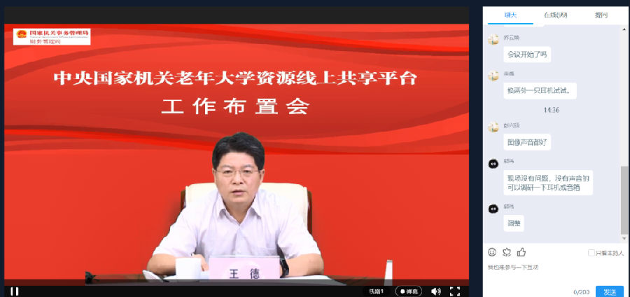 为做好中央国家机关老年大学资源共享平台上线运行、宣传推广和使用管理工作,8月25日,国管局财务管理司以“云课堂”的形式,召开了平台使用管理工作布置会,通报平台基本情况和建设进展,明确下一步工作安排和要求。国家开放大学作为平台建设合作方,承办了此次会议。