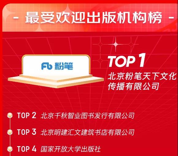同榜单中,国家开放大学出版社位列最受欢迎出版机构第4位。前三皆为民营出版公司。