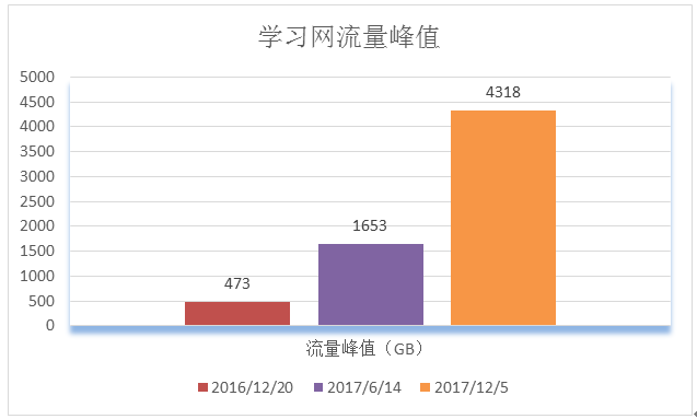 2017年秋季学期,“国家开放大学学习网”访问量出现大幅度增长,截止到12月6日,全国总请求量累计28.13亿次,网络流量为130.99TB。其中日访问量峰值达到4.2T,是上学期的约2.6倍,为去年的 9.13倍,充分体现了广大师生对“学习网”的认可。