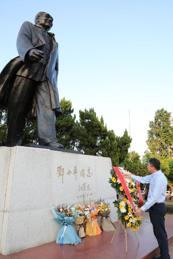 国家开放大学党委书记、校长荆德刚代表办学体系向邓小平铜像敬献花篮