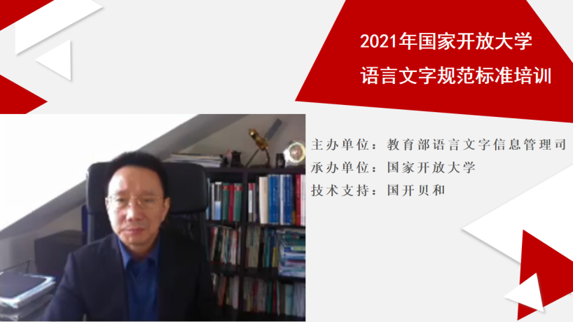 国家开放大学首期语言文字规范标准培训班于11月12日结束。本期培训班为期五天,由教育部语言文字信息管理司主办,国家开放大学承办,国开贝和教育科技(北京)有限公司技术支持。教育部语信司副司长刘宏作培训总结讲话。经报名遴选,共有国开体系200多位办公室语言文字工作者及一线教师通过远程学习方式参训。