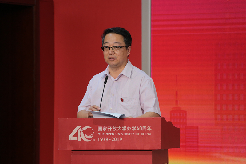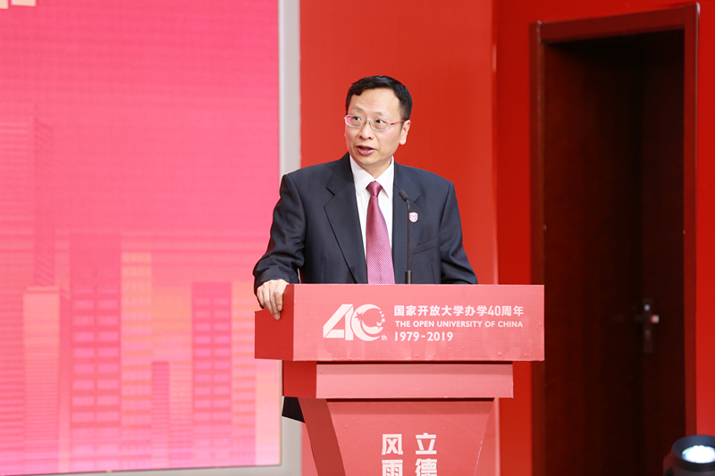 孙尧转达了陈宝生部长对国家开放大学办学体系全体师生员工的问候,对40年来国家开放大学办学体系为促进教育公平、深化教育改革、推进教育现代化建设做出的贡献表示祝贺。