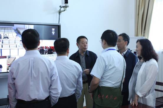 揭牌仪式后,与会代表参观了新县学习中心的教育教学设施。在由国家开放大学援建的云教室内,大家通过远程交互系统与南海实验学院、魏公村学习中心等国家开放大学实验学院分院、学习中心的教职员工进行了远程实时互动交流。国家开放大学云教室以先进的技术支持和教育理念为支撑,为大家展示了以“六网融通”为核心、基于网络、线上线下相结合的国家开放大学远程教育教学模式。(摄影:屠臣阳)