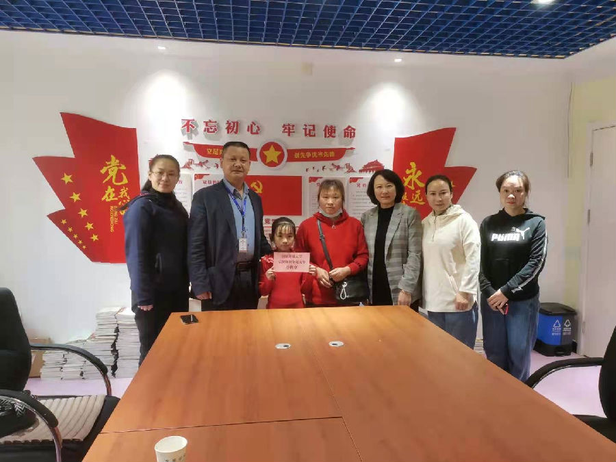 帮扶对象确定后,后勤保卫部党支部召开支部扩大会议,通报情况,统一思想,共有15名党员和非党员同志主动积极资助,决定每月帮扶600元,作为学生在校期间的生活补贴,直至其走进大学校园。2021年4月21日,后勤保卫部党支部专程到京蓼学校,与学校负责人、学生及家长见面,商定帮扶事项,确定具体事宜,并希望帮扶学生奋发学习,健康成长,知党恩报党恩,将来做一个有出息、懂得感恩、奉献社会的人。