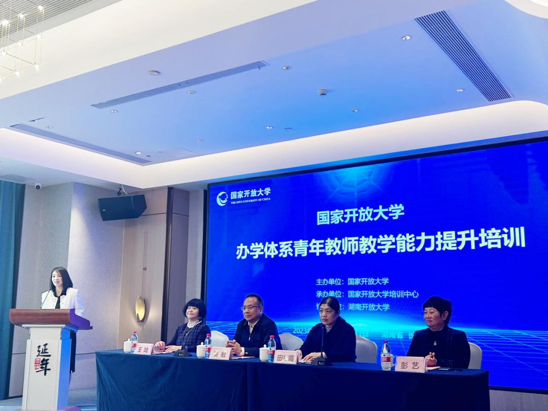 为深入学习贯彻习近平总书记关于教育的重要论述,大力弘扬教育家精神,加快建设适应国家开放大学转型发展的高素质青年骨干教师队伍,11月26日至12月1日,国家开放大学学生工作与教师发展部组织95名办学体系青年教师赴长沙开展为期6天的教学能力提升培训。湖南开放大学党委委员、副校长吴敏,国家开放大学学生工作与教师发展部副部长田素霞,湖南开放大学培训学院院长彭艺,首都师范大学教育技术研究所所长王陆出席开班仪式。本次培训由国家开放大学培训中心承办,湖南开放大学协办。