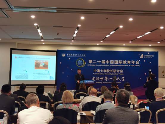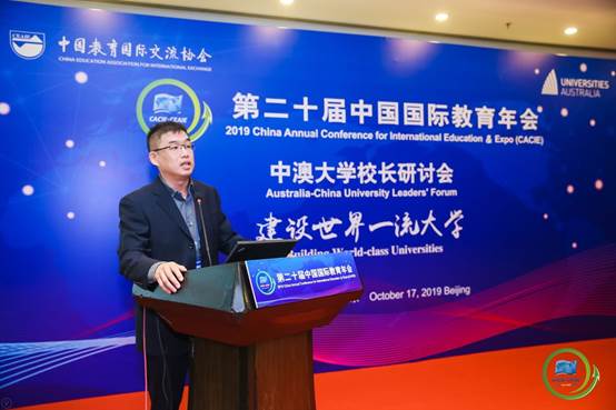 2019年10月,中国教育国际交流协会在北京举办“第二十届中国国际教育年会”。期间,中国教育国际交流协会与澳大利亚大学协会于10月17日共同举办“中澳大学校长论坛”。国家开放大学作为中国教育国际交流协会会员单位,应邀参加本次论坛,副校长林宇代表学校在论坛上做了题为《以当代信息技术托起更多“大学梦”》的演讲。