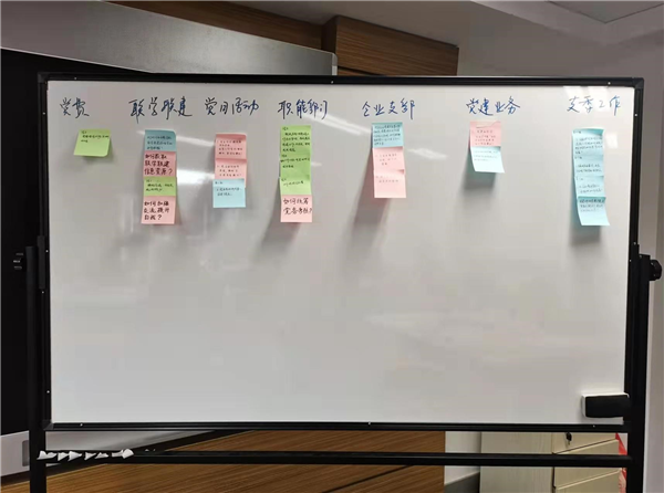 在“提出问题”环节,各组就党务工作中遇到的实际问题和困难开展组内交流研讨,共提出7大类、21项问题。随后,各组分别认领一类问题,通过查阅资料、组内研讨、跨组交流等方式提出具体有效的方法举措37项,由小组组长上台展示,亮出举措。活动在热烈的氛围中顺利结束。