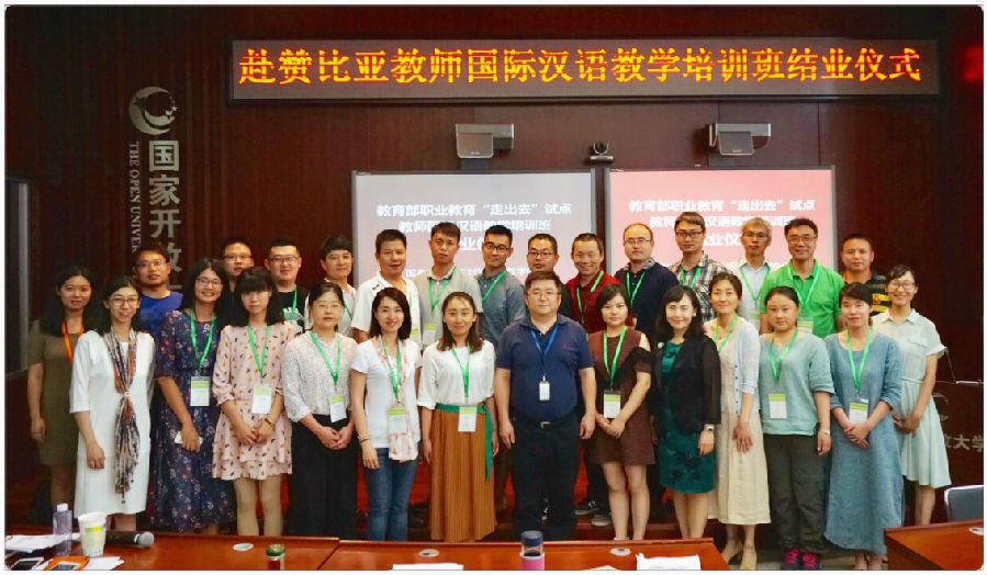 6月26日至30日,教育部职业教育“走出去”试点项目——教师国际汉语教学培训班在国家开放大学举行,来自全国9所职业院校和中国有色金属工业人才中心的24位教师参加培训。这是国家开放大学受教育部试点工作委托而举办,为中国向赞比亚输出职业教育打造“双师型”教师队伍进行的国际汉语师资培训,也是国家开放大学为筹建海外学习中心进行的人才储备。