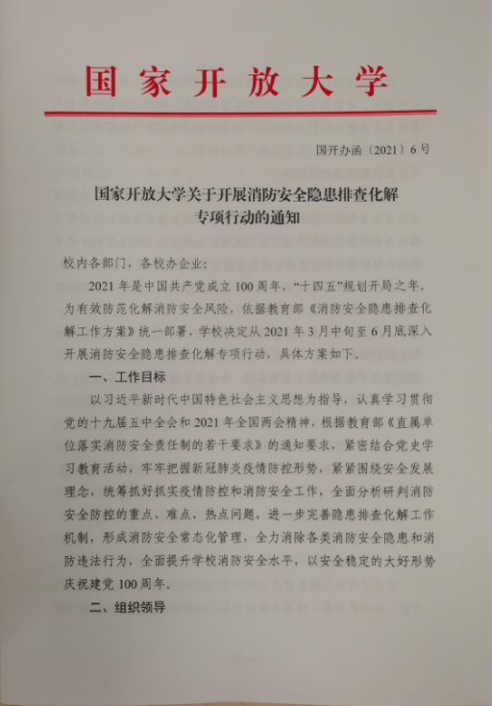 国家开放大学召开消防安全隐患排查化解工作动员部署会