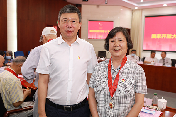 2021年6月25日,国家开放大学召开庆祝建党100周年暨“七一”表彰大会,为“光荣在党50年”老党员颁发纪念章,表彰优秀共产党员、优秀党务工作者、优秀党支部书记、优秀党支部,回顾党的光辉历程,激励广大党员干部不断增强“四个意识”、坚定“四个自信”、做到“两个维护”,不断提高政治判断力、政治领悟力、政治执行力,握好接力棒,走好新时代推动开放教育事业高质量发展的长征路。