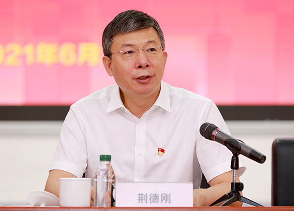 荆德刚号召大家更加紧密地团结在以习近平同志为核心的党中央周围,在教育部党组的坚强领导下,以长期不懈的艰苦努力、永不懈怠的精神状态、一往无前的奋斗姿态走好新时代的长征路,为建设世界一流开放大学而不懈奋斗,以优异成绩向党的100周年献礼。