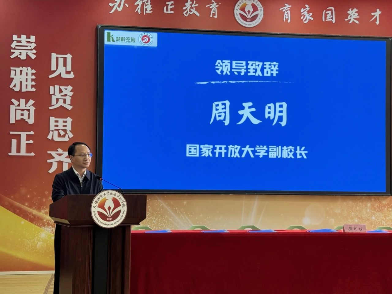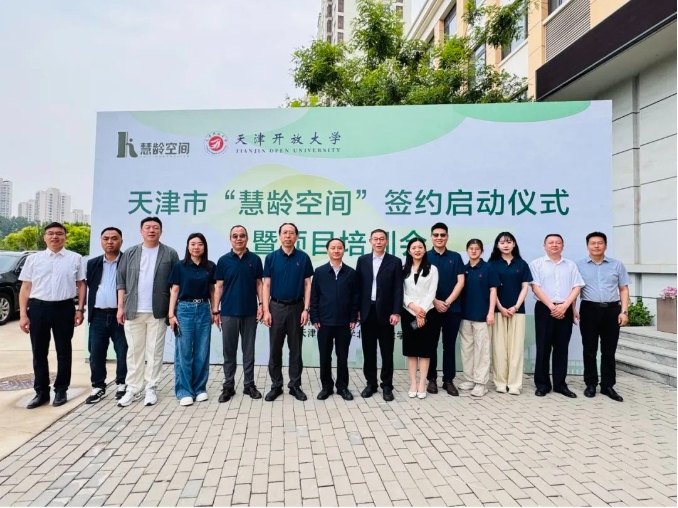 周天明和杜长有共同为“慧龄空间”项目天津合作建设单位(天津开放大学)揭牌。天津市教育委员会继续教育处副处长王勤,国家开放大学教育基金会秘书长郑洁,国家开放大学出版传媒集团董事长冯立国、总编辑刘占荣共同为20个慧龄空间授牌。本次活动标志着“慧龄空间”这一“教育+养老”公益项目正式落地天津。