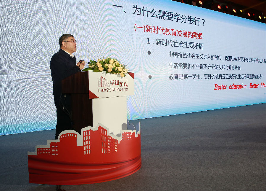 王继平指出,刚刚闭幕的党的十九大对教育工作提出了新目标新任务新要求,如何全面贯彻部署好新时代中国特色继续教育是当前的重要任务。他认为,当前中国教育的两个短板是学前教育和继续教育,而继续教育是中国教育的“最后一公里”。国家开放大学学分银行建设试点启动5年来,做了大量工作,而且成效很大、很有意义、很有前途。今天以学分银行为机理的“学银在线”正式上线开通,标志着学分银行在前面5年成果积累的基础上,开始进入全面落地、推广应用的新阶段。他要求,未来学分银行建设,一是要把信用放在第一位,把质量放在最高点,确保学分银行的品牌公信力;二是要走中国特色学分银行之路,从需求、从容易做的地方入手,把重点放在当前,从继续教育领域进行大胆突破。